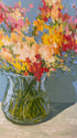 Created for a special birthday, a painting of Freesias, their favourite flower. After visiting the local florist the ideas started to flow, this painting has become my of favourites to date.